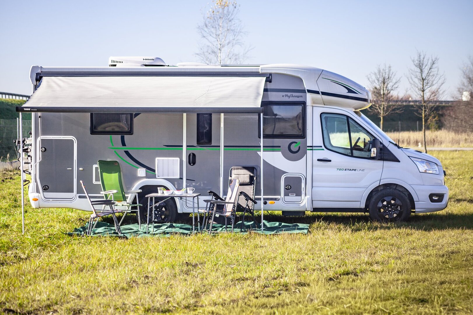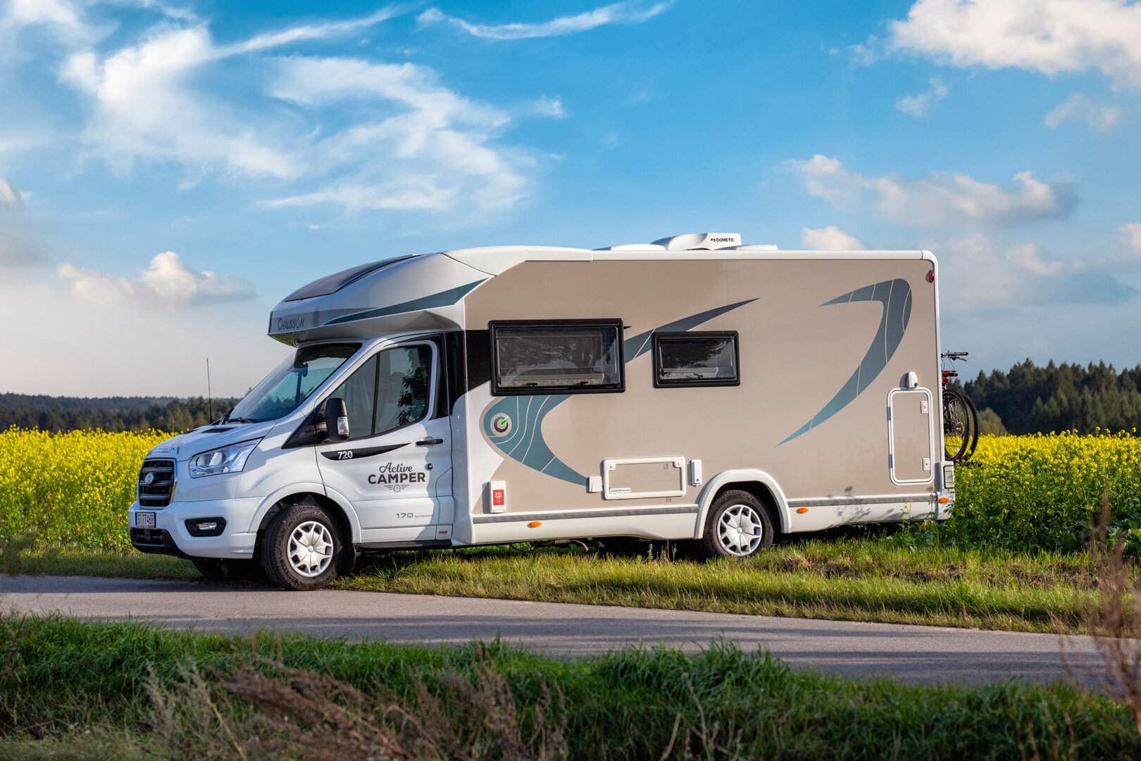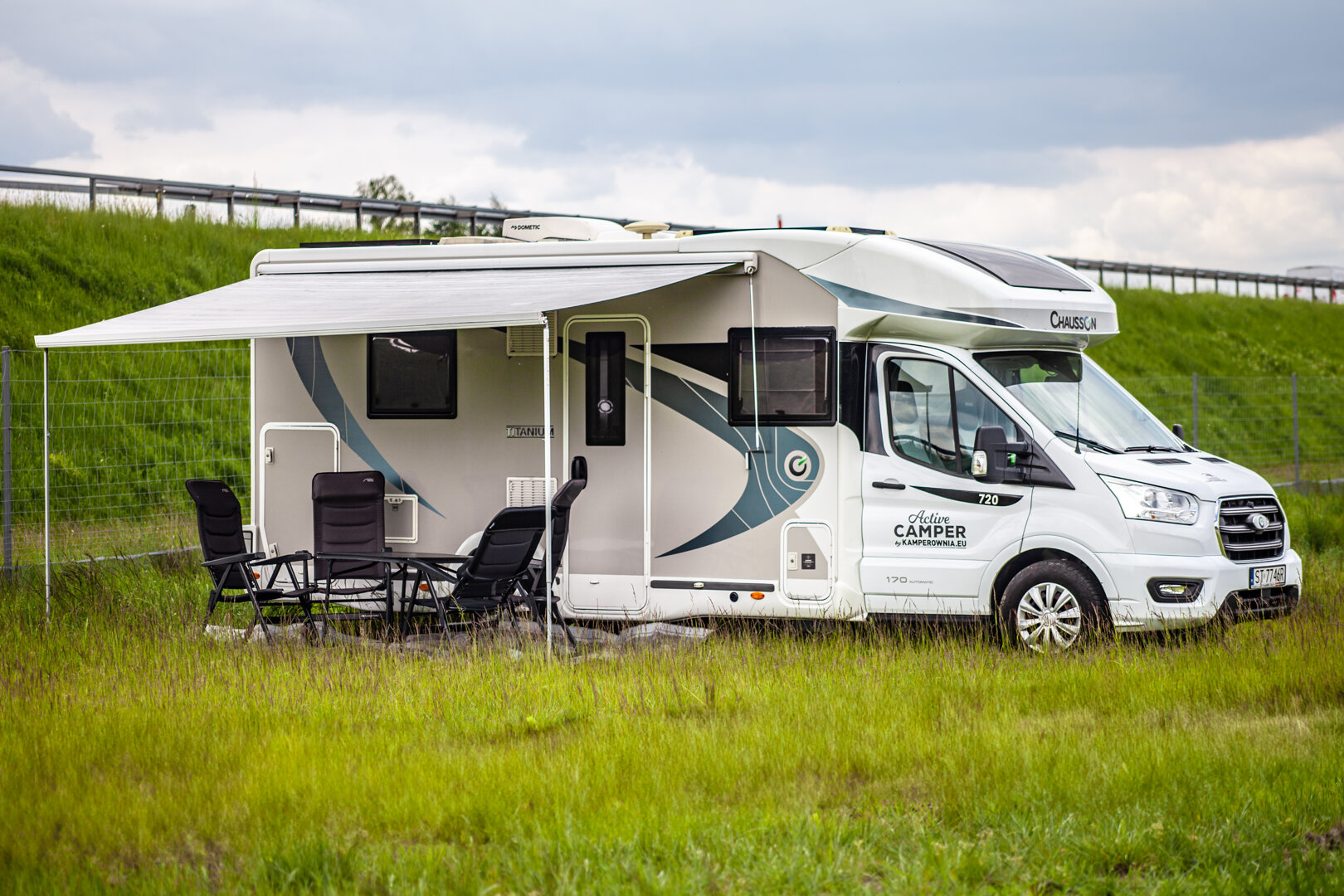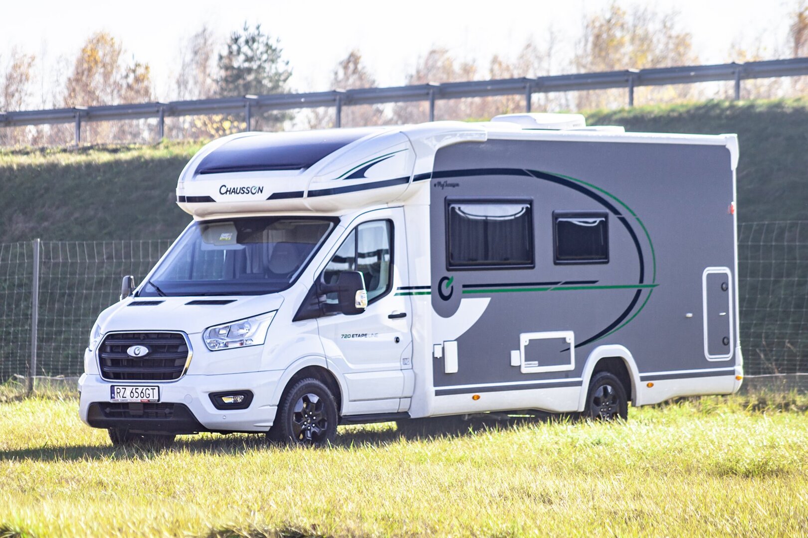 4 osob. kamper Chausson 777GA Titanium na bazie Forda Transita z automatyczną skrzynią biegów.